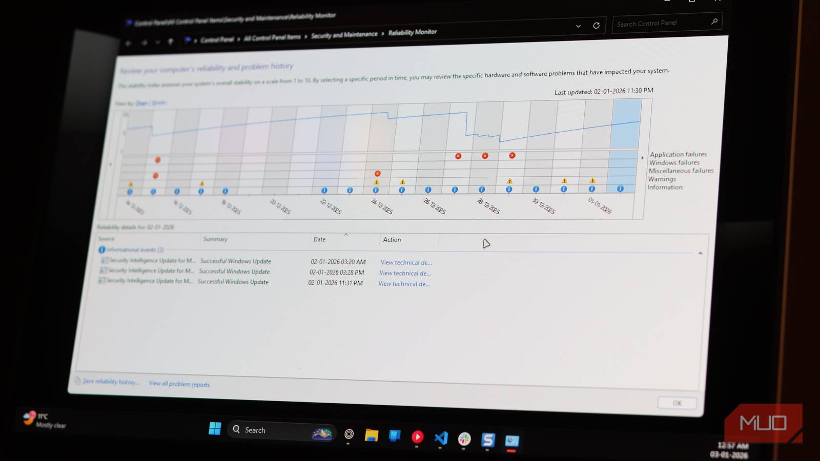 Your reliability score is a window into your PC’s current health. If you’re wondering why your PC is feeling sluggish or unstable, the Reliability Monitor can pinpoint the culprit. Maybe it’s an incorrectly installed app you don’t even realize is causing problems, maybe an outdated driver, or the usual Windows update bug.