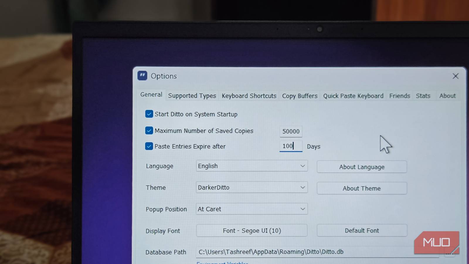You can customize almost everything about Ditto’s appearance, including the window size, transparency, fonts, themes, and even the position where it appears on the screen. I prefer a semi-transparent clipboard that’s configured to appear at my cursor position.